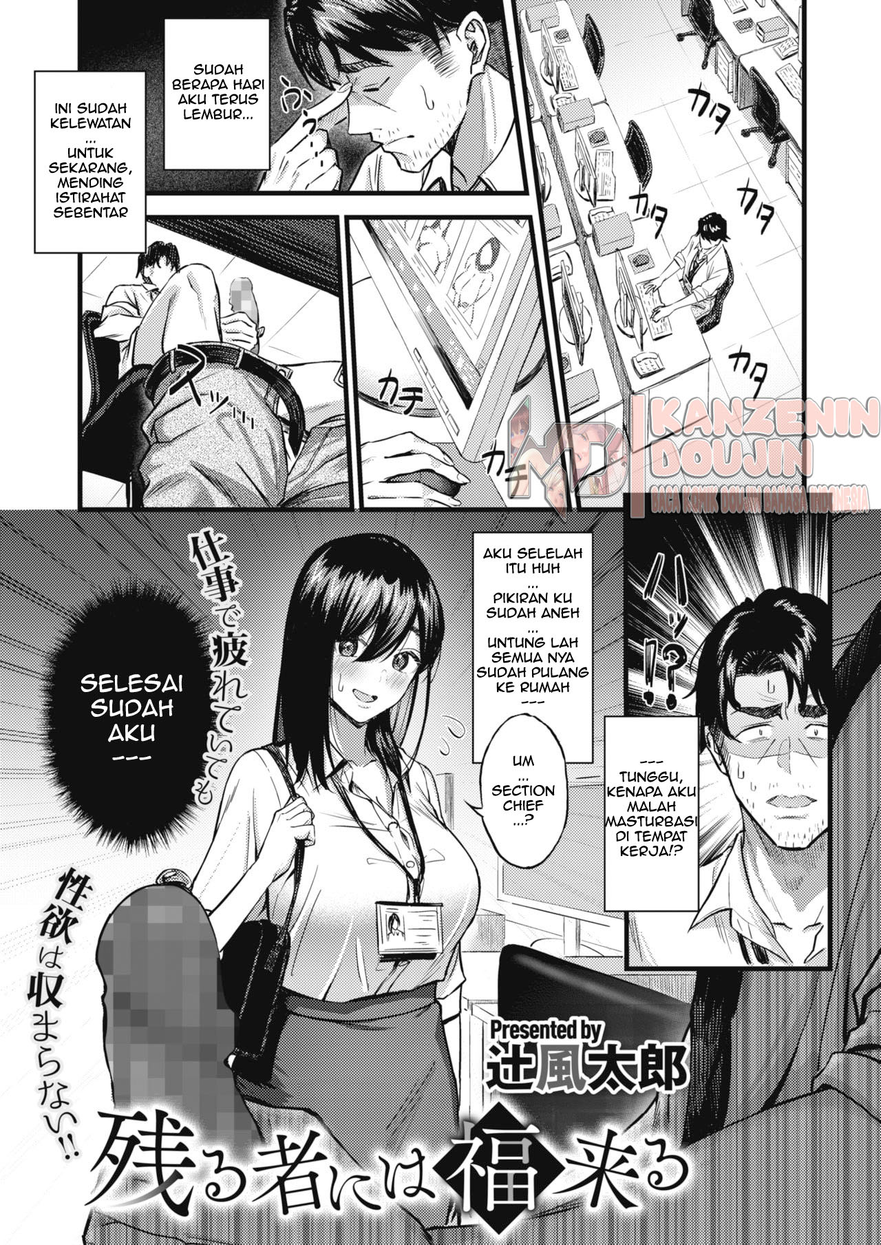 Karena terlalu cape. dia istirahat dan melakukan onani di kantor tapi di pergok oleh rekan kerjanya